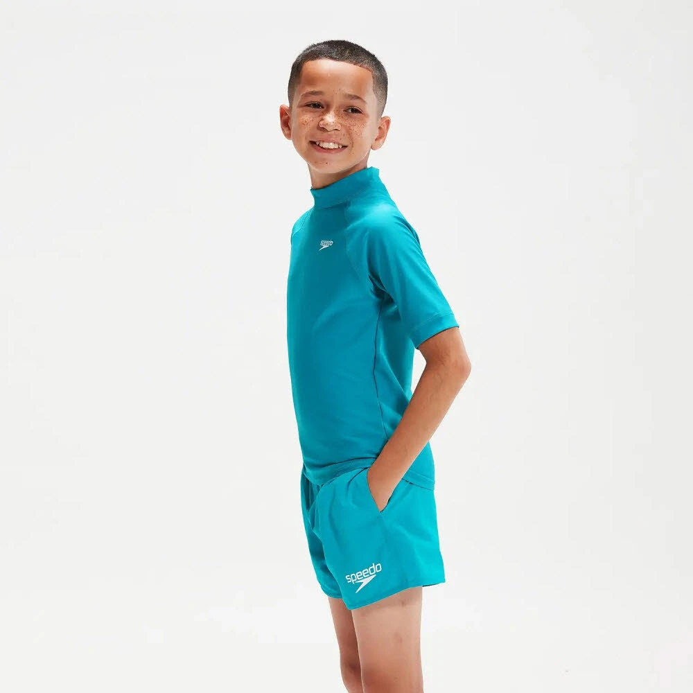 Mit diesem grünen Kurzarm-Rash-Top steht den sommerlichen Vibes nichts mehr im Wege. Auf der Vorderseite ist das Oberteil einfarbig, auf der Rückseite befindet sich ein flippiger Tie-Dye-Druck und ein Speedo-Logo. Der bequeme Pull-On-Stil bietet UPF40 für Sonnenschutz im und außerhalb des Wassers. Unser ECO EnduraBrite-Gewebe bietet eine hervorragende Farbleistung, sodass du dich länger an den leuchtenden Farben erfreuen kannst. Das Rash-Top bietet eine höhere Chlorbeständigkeit als herkömmliche Bademodenstoffe, sitzt dank CREORA® HighClo™ länger wie neu und besteht zu 100 % aus recycelten Materialien.